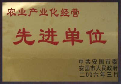 2006年3月,我公司被評為農業產業化先進單位。
